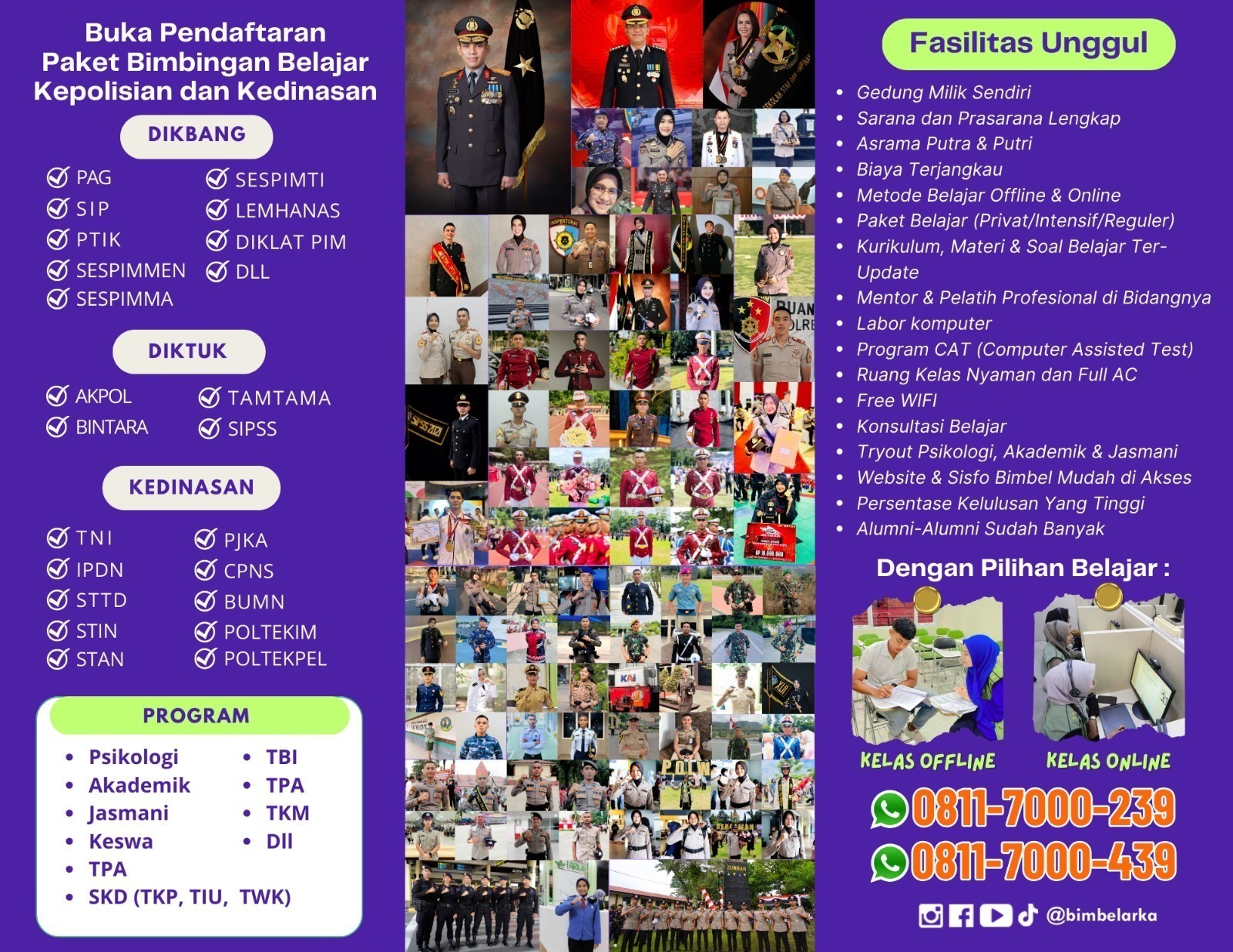 Tes IQ, tes bakat minat, asesmen gaya belajar, kesiapan sekolah, dan deteksi dini kesulitan belajar.